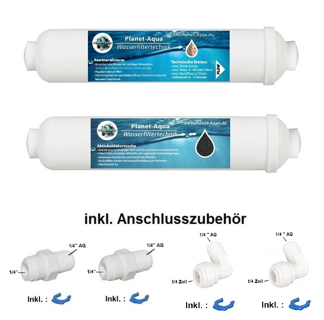 • 1 x Mineralfilter 1 x Aktivkohlefilter 2 x Adapter 1/4 Zoll gerade 2 x Winkeladapter 1/4 Zoll