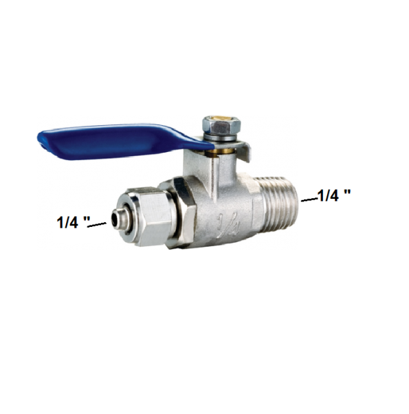 1 x Absperrhahn mit 1/4 Zoll Gewinde und 1/4 Zoll Schlauchausgang