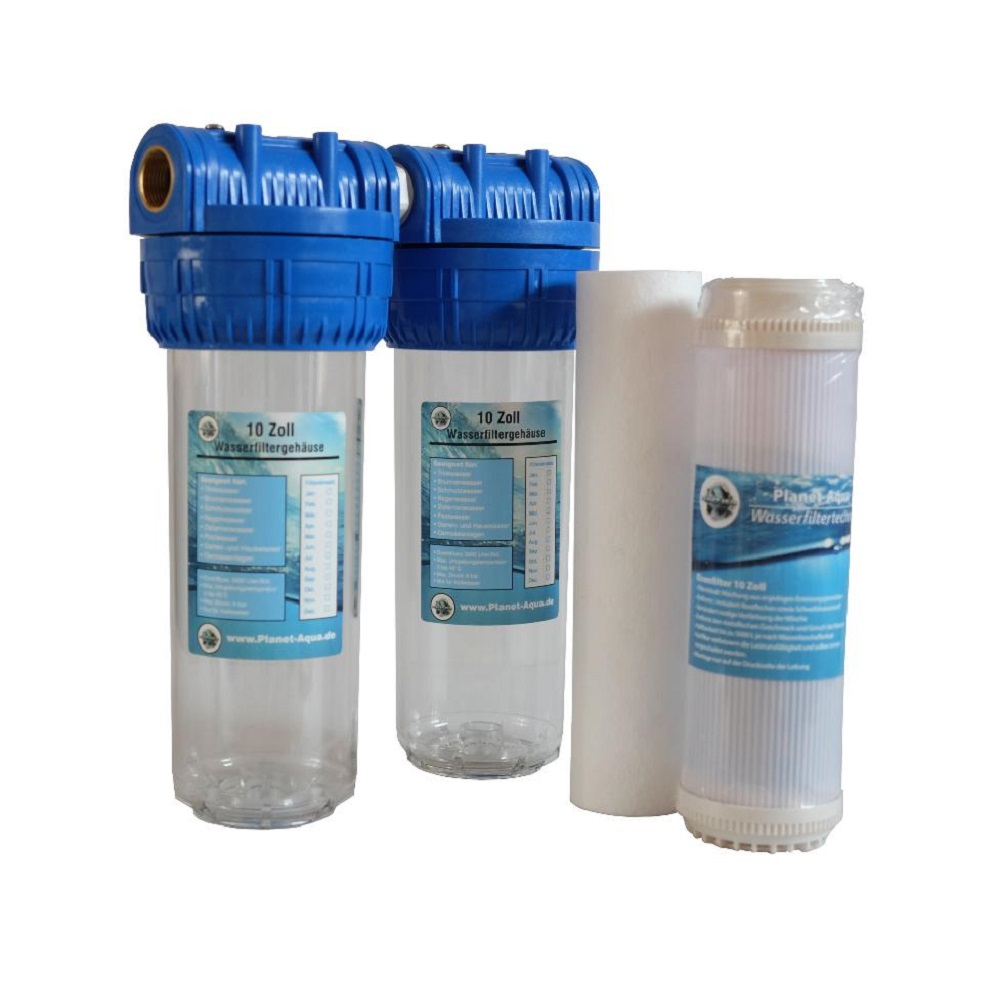 Planet-Aqua Wasserfilter Filtergehäuse Duo XS 10 Zoll inkl Verbinder Sedimentfilter und Eisenfilter Kartusche für