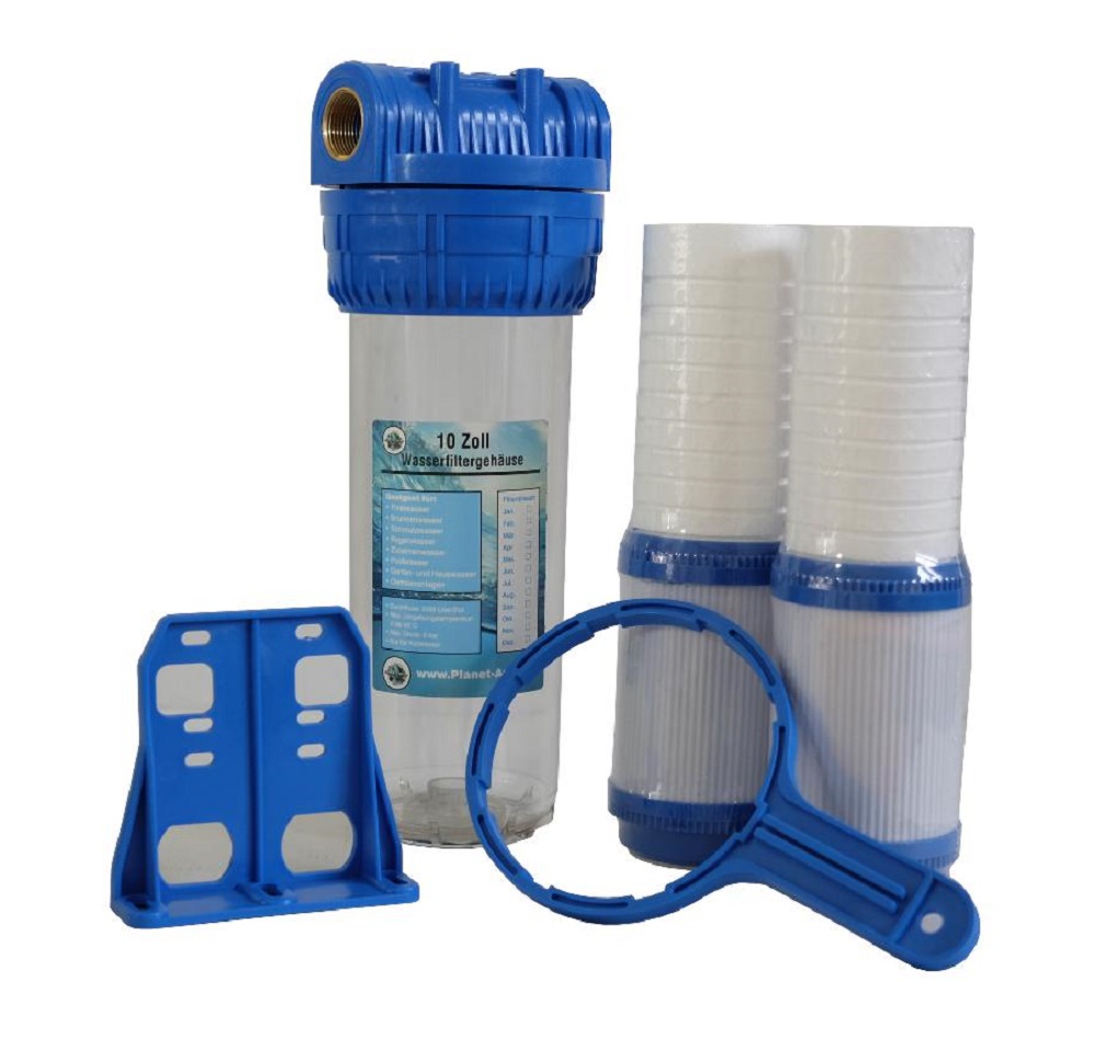 Planet-Aqua Wasserfilter Filtergehäuse SET 10 Zoll inkl 2 Kombifilter Sediment Aktivkohle und Zubehör mit Filterwechsel-