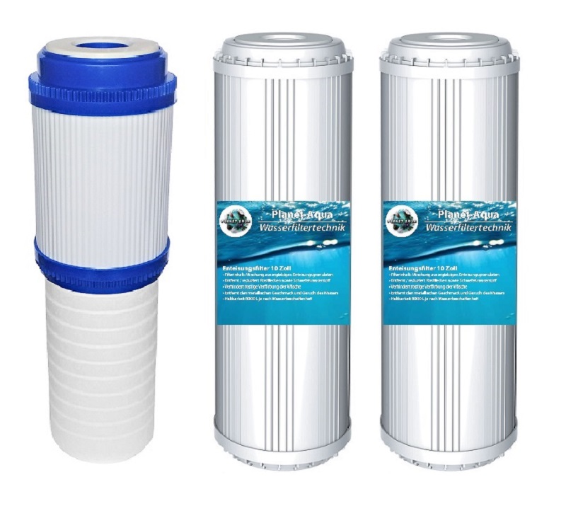 Planet-Aqua Wasserfilter SET 10 Zoll 1 x Kombifilter + 2 x Eisenfilter gegen Eisen im Brunnenwasser Trinkwasser Poolwasser