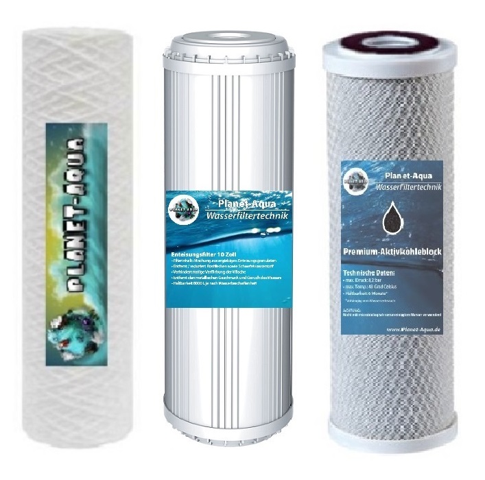 Planet-Aqua Wasserfilter Set Wickelfilter Eisenfilter und Aktivkohleblock Ersatzfilter 10 Zoll für Wasserfilteranlagen