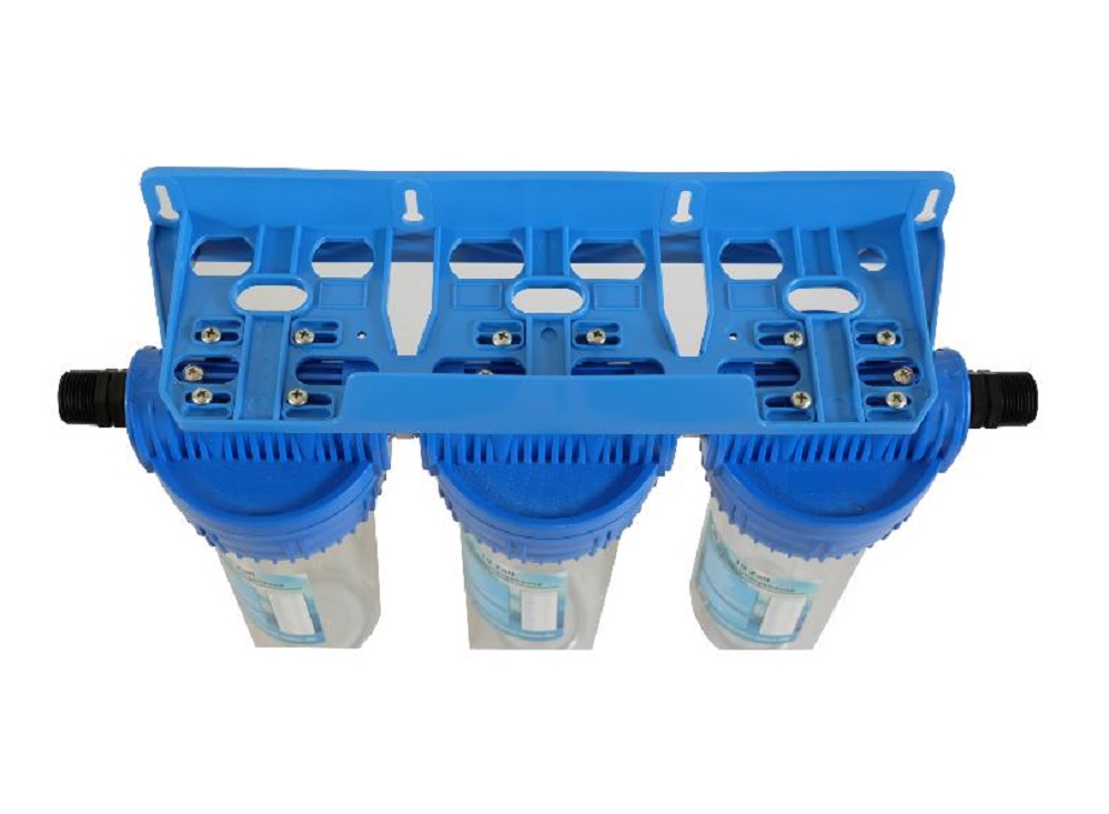 - 1 x Wandhalter für drei Filtergehäuse in blau
