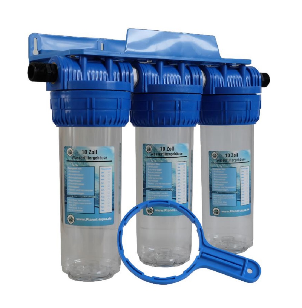 Planet-Aqua Wasserfiltergehäuse SET TIO-8 Filtergehäuse 10 Zoll Vorfilter inkl Wandhalter Filterschlüssel und Zubehör